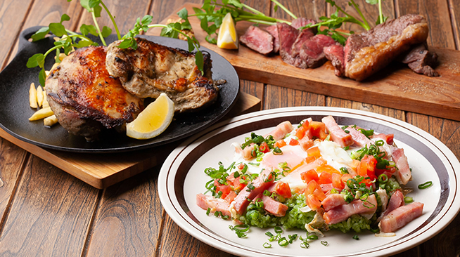 恵比寿駅から徒歩5分に位置する『Areverie TERRACE ebisu』。大きな窓やソファ席などが特徴的な内観で、開放的な印象。テーブルやソファ席以外にも小上がりの半個室もあり、ベビーカーや小さな子と一緒でも、隣の人との距離を気にせず食事を楽しめます。ペット同伴もOKで、ペットを含めた家族全員の外食にもおすすめ。ワンちゃん専門メニューもあるので、愛犬家は要チェック!一番人気の『ジャーク・チキン』も楽しめる【TERRACEコース】は6,000円(税込み)。